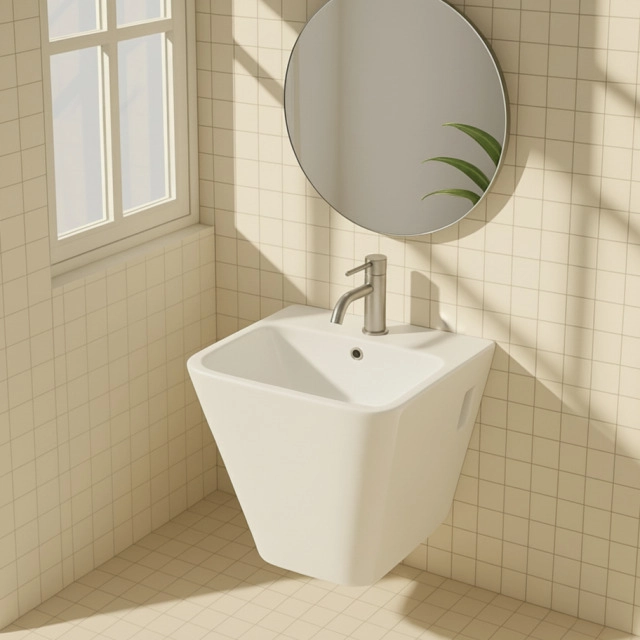 페데스탈 일체형 벽걸이 세면기 반다리 사각 세면대