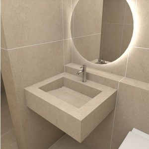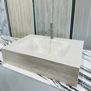BELLO 심리스 세면대 포세린 타일 베이지 트라버티노 커브 세면기 800X550X180