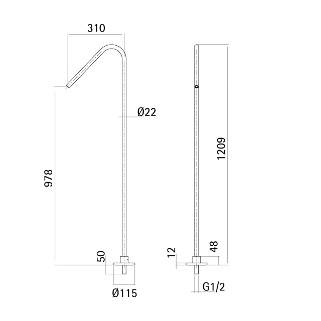 스탠딩 욕조용 토수구로, 매립 믹서를 별도로 구매 하셔야 설치 및 사용이 가능합니다.