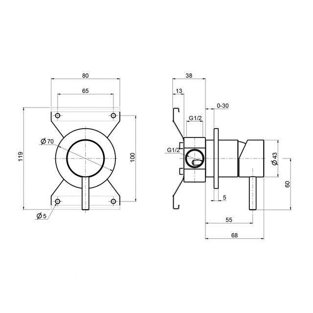스테레오 1WAY 매립믹서 1663 (1663AS)