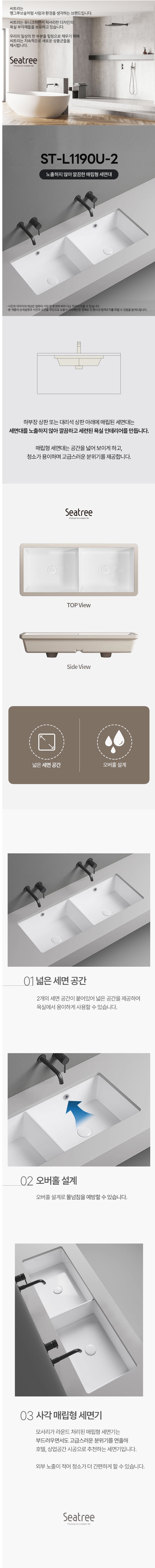 씨트리 사각 대형 언더볼 세면대 2볼 세면기 ST-L1190U-2