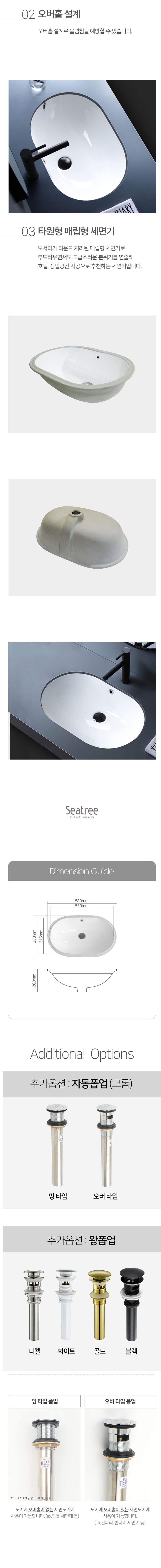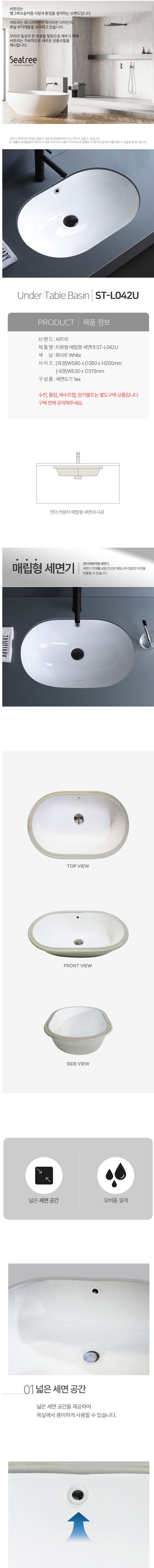 씨트리 타원형 언더볼 세면대 매립형 세면기 화이트 ST-L402-U