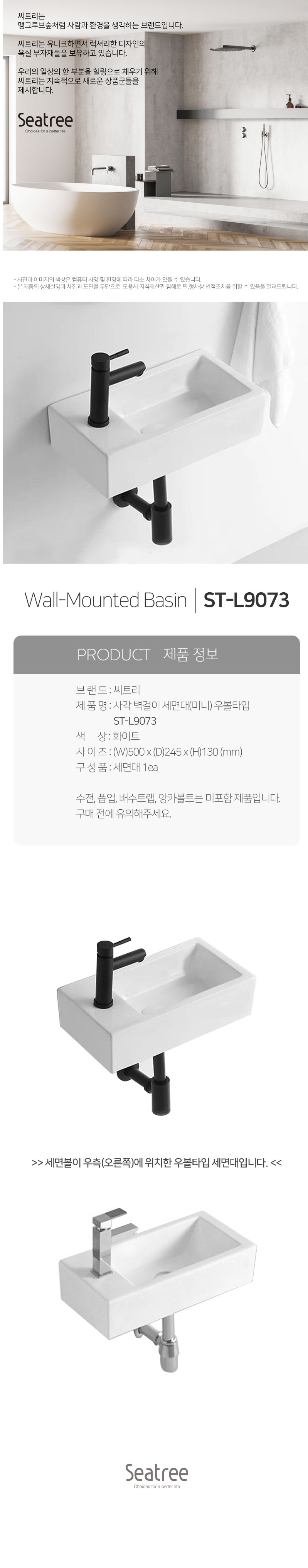씨트리 미니 벽걸이 세면기 사각 ST-L9073