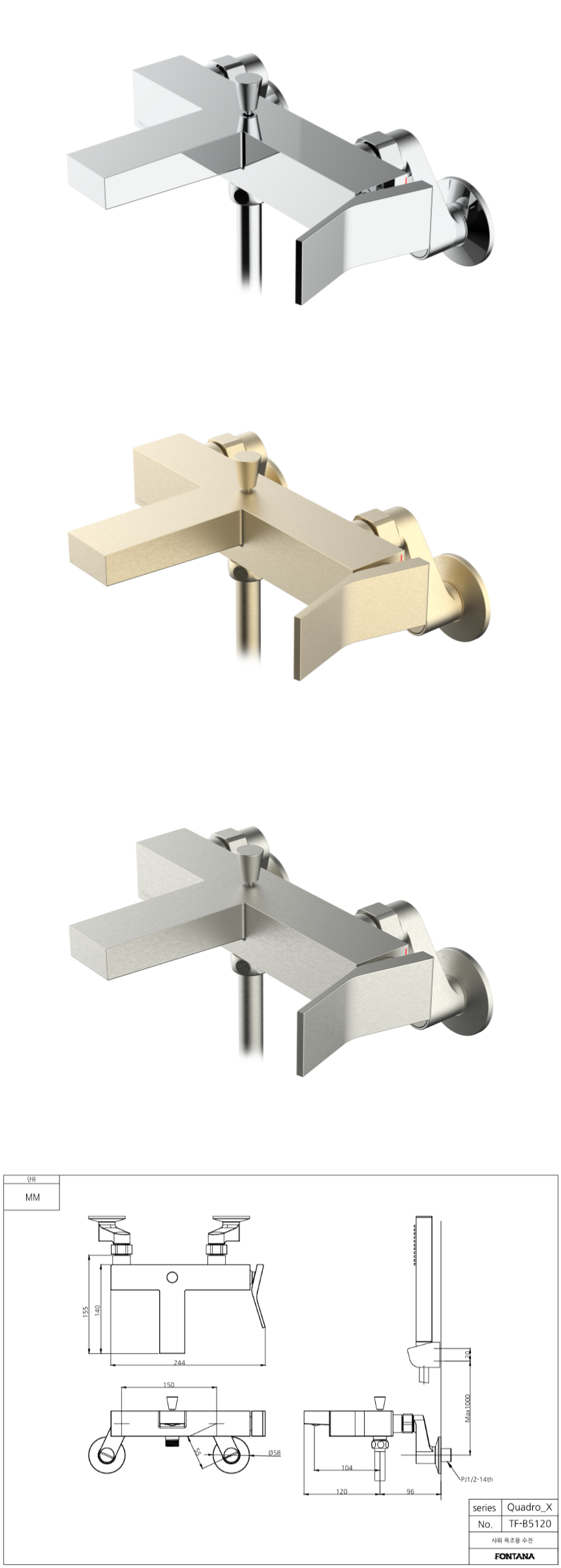 콰드로 벽붙이 샤워 욕조 수전 샤워기 TF-B5119
