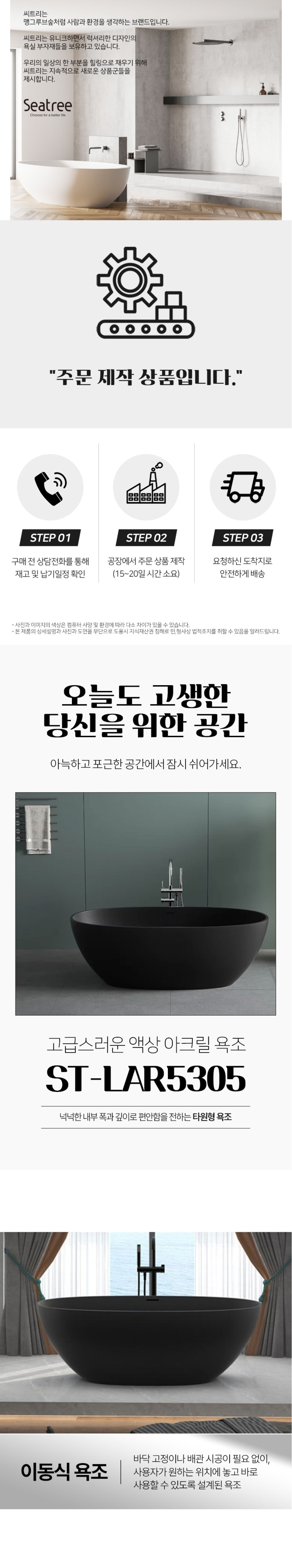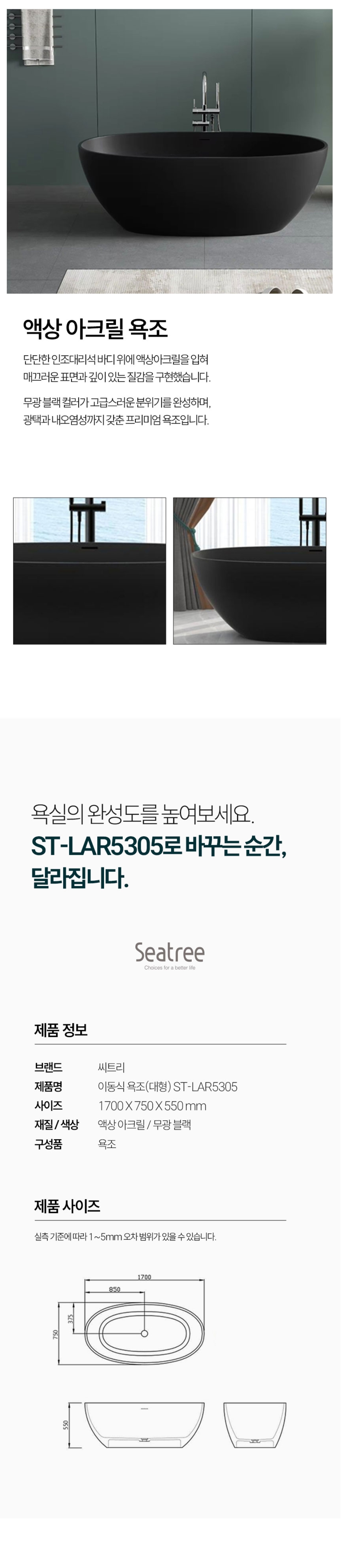 씨트리 무광 블랙 스탠딩 욕조 이동식 액상 아크릴 ST-LAR5305 (1700)