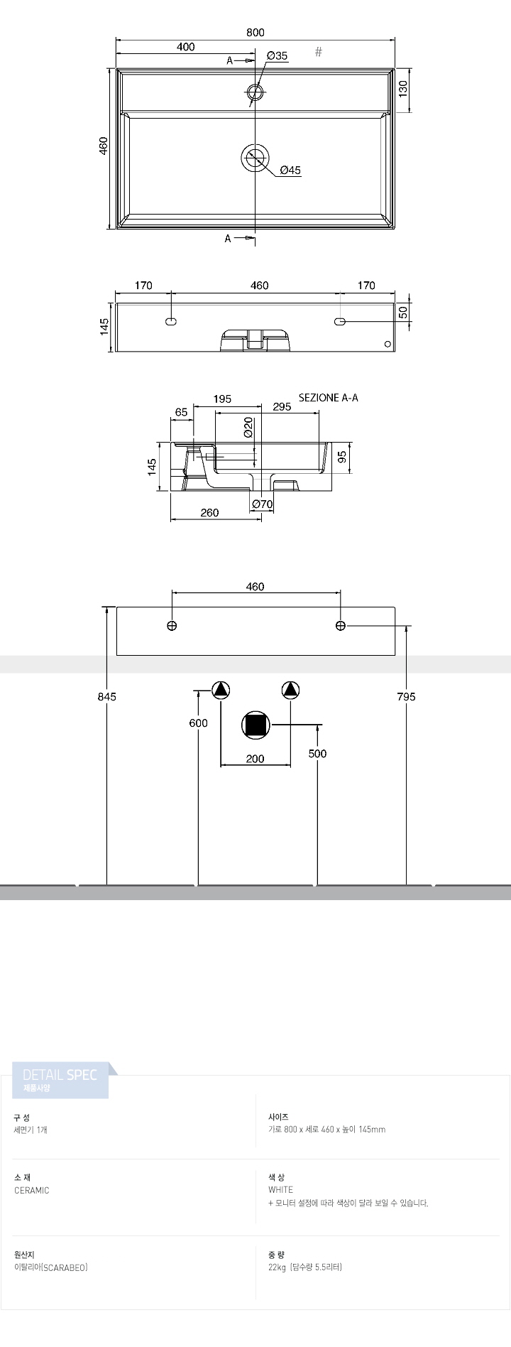 앙카포함 / 수전, 폽업, 하부부속 별도